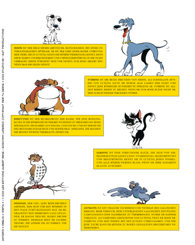 Ganz Lutetia? Nein! Eine kleine Schar unbeugsamer Tiere unter der Führung von Idefix hört nicht auf, gegen die geplante Romanisierung der Stadt Widerstand zu leisten. So ist das Leben nicht leicht für General Labenius und die römische Hundemeute, die versuchen, in Lutetia den römischen Frieden durchzusetzen…