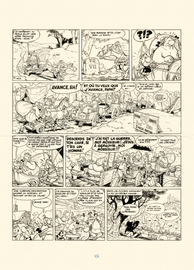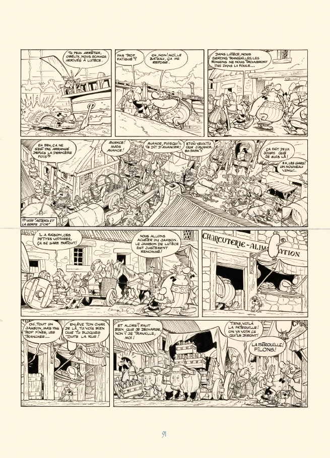 - Les planches originales dessinées et encrées par Albert Uderzo d’après le scénario de René Goscinny