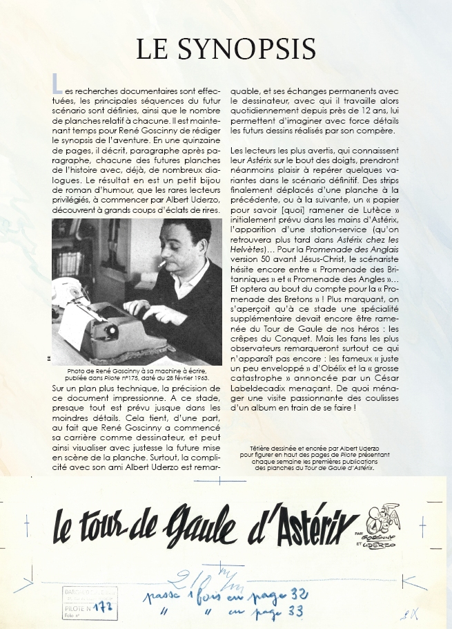 - Le dossier de 32 pages pour tout savoir sur l’album, avec des documents de travail inédits de René Goscinny et Albert Uderzo dont 6 pages dédiées à Idéfix son histoire, la série animée et la série de bandes dessinées.